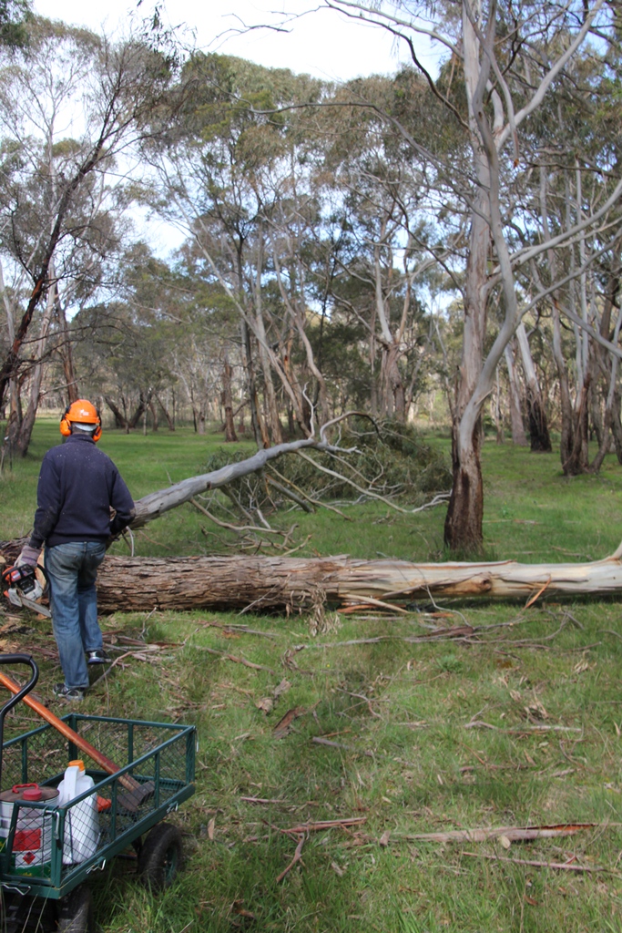 When we moved here, I knew we would need a chainsaw.  We had so many trees, and our heating comes from a wood-burning fire.  In my mind, I could see that after a high wind, it was inevitable we would need to clean up fallen branches, and I knew there were some dead trees which needed to be removed – one of which is close to the house and poses a potential hazard if it falls the wrong way.   I didn’t imagine cutting down large, healthy, beautifully-formed  eucalypts, yet this is what we had to do last weekend.  Three healthy trees had to be removed to make way for a new boundary fence.