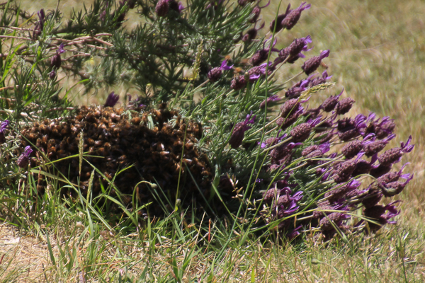 Feeling happy that the morning efforts had been successful, our friends went home and we had a late lunch. After lunch, we checked again, only to find that the swarm had moved out of the box. This time the swarm was under a lavender bush. Apparently the queen did not like her new home. I phoned our friends, but by the time they could return to our place, the swarm was gone. After a week, we still have not found them.